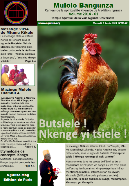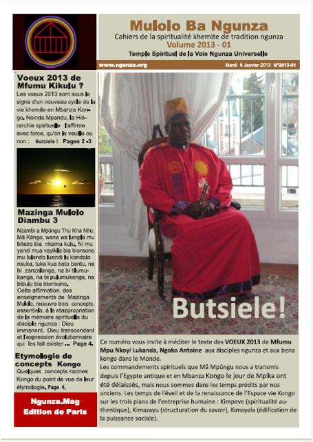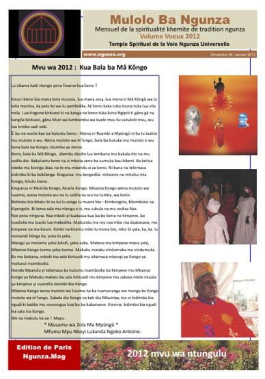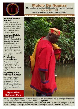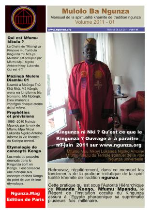 Volume 2011-01:Prophétie centrale Numéro "Un" de Mulolo ba Ngunza, "Ngunza.Mag". Il contient la prophétie centrale des bena kongo.»
