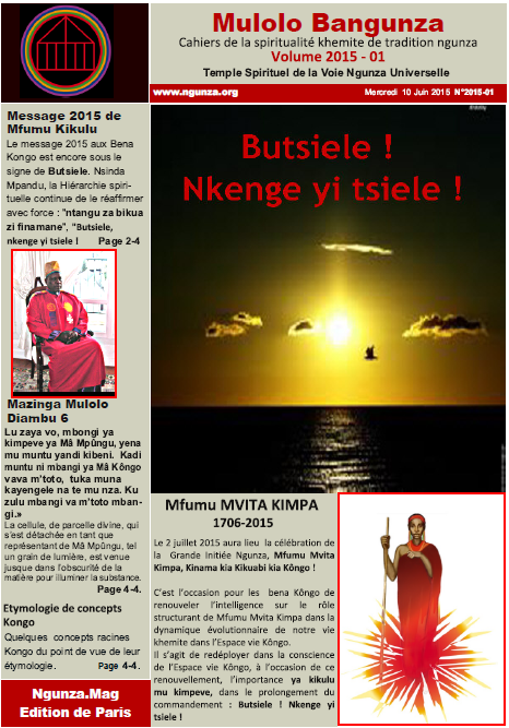 Ce numéro reprend le Message de Mfumu Mpu aux bena kongos. Il traduit un commandement spirituel.»